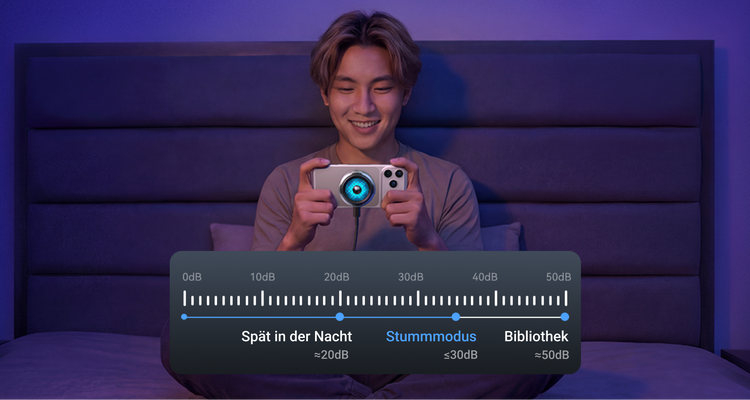 Geräuschpegel nur 30 dB – erfüllt die ISO-Schlafnormen. Ungestörtes Gaming und Live-Streaming.