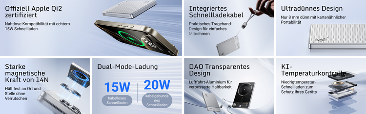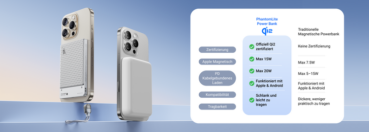 Echte Qi2-Zertifizierung mit magnetischem, tragbarem Design