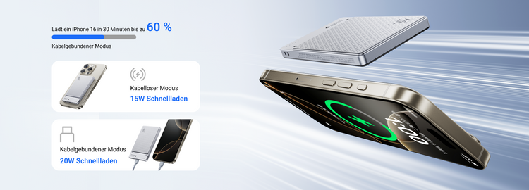 Unterstützt 15W kabelloses Laden und 20W kabelgebundenes PD-Schnellladen
