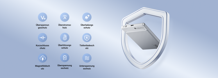 3000mAh (5V=2A), Energieumwandlungseffizienz ≥77%