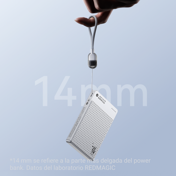 Con solo 14mm, esta batería magnética de 10.000mAh es un 50% más delgada que los bancos de energía tradicionales y viene con un práctico cable de carga rápida con correa para un uso sin interrupciones.