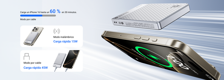Soporta carga inalámbrica de 15W y carga rápida por cable PD de 45W.