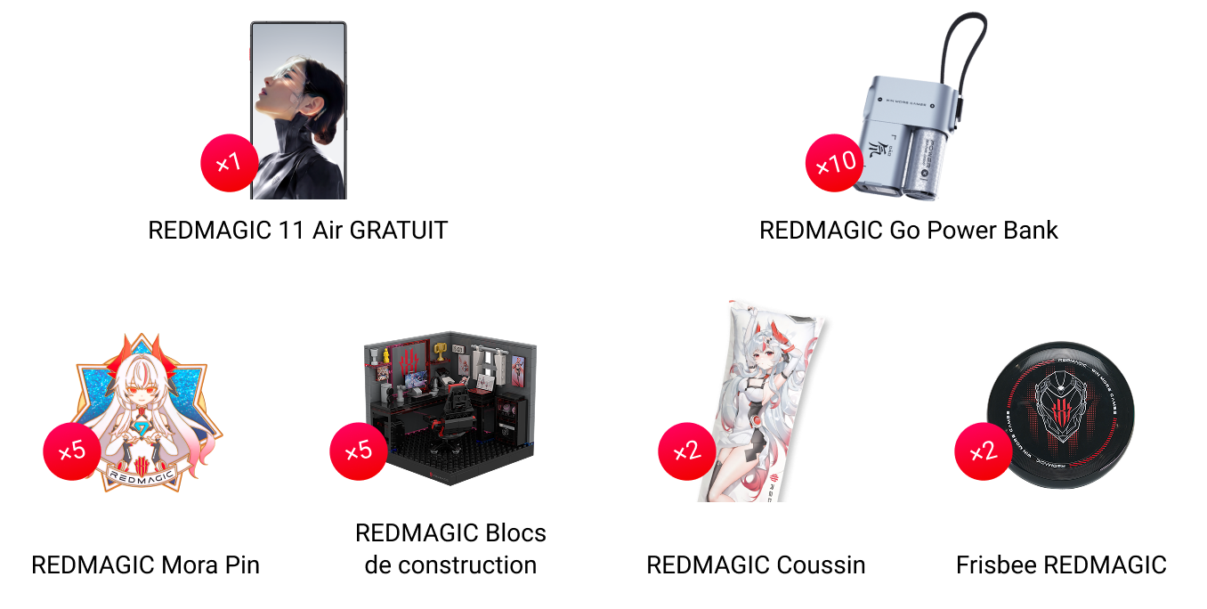 - REDMAGIC Coussin x 2 - Notification des gagnants et livraison des prix : Les gagnants seront informés par email. Les détails de la remise et de l’expédition des prix seront communiqués à partir du 13 février 2026.
