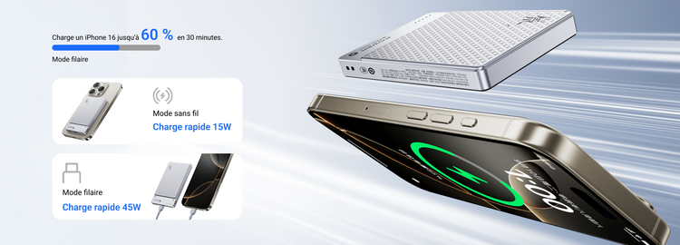 Prend en charge la charge sans fil 15W et la charge rapide filaire PD 45W.