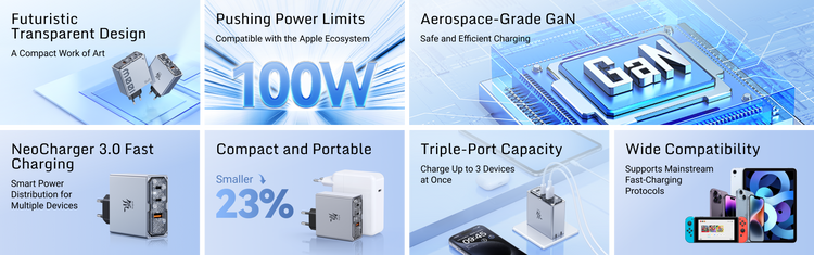Armed with our self-developed NeoCharger 3.0 fast-charging technology, the charger intelligently identifies connected devices and allocates power accordingly. Currents of different sizes switch seamlessly, ensuring each device receives the appropriate power for safe charging.