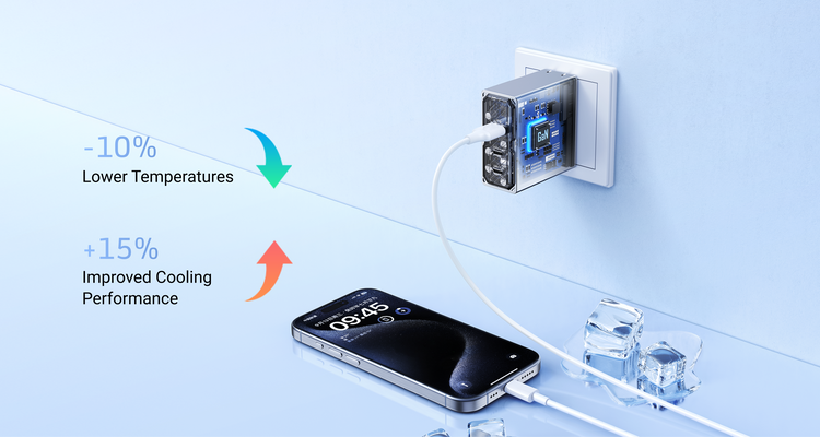GaN chips and advanced cooling technology ensure a low temperature, even at full load. Real-time smart thermal control also accelerates heat dissipation, keeping the charger cool to the touch while protecting your battery's health.