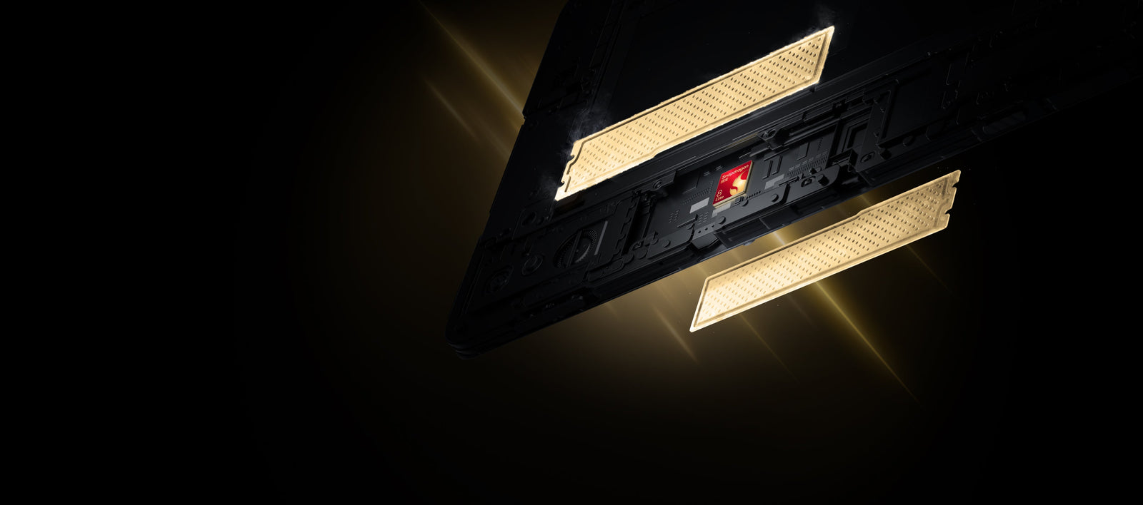 This Astra's enhanced 13-layer ICE-X cooling system combines Liquid Metal 2.0 with innovative gold-plated, dual-layer sandwich vapor chambers and a high-speed Turbo Fan to actively reduce core temperatures by up to 8°C, improving cooling efficiency by 28%.